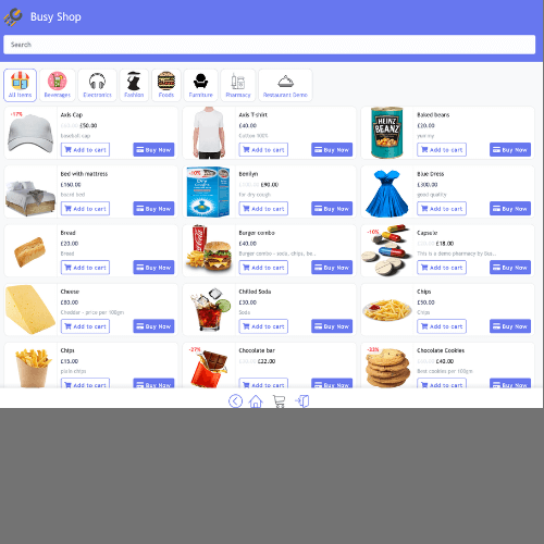 Your digital Menu comes with a multi-featured eCommerce with a mobile-like user interface.